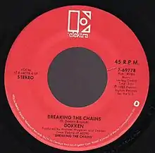 "Breaking the Chains" is a song by American heavy metal/glam metal band Dokken, appearing on the band's debut album of the same name. The song was originally released as a single "Breakin' the Chains" in 1981 through Carrere Records exclusively in Europe, appearing as the b-side to the "I Can't See You" single.[2] "Breaking the Chains" was released as a single in 1983 through Elektra Records, being the band's first American single. The song was a modest success, peaking at #32 on the Billboard Mainstream Rock chart.[3] The song remained on the chart for 13 weeks.[4]