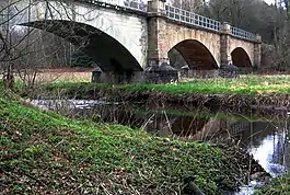 The route continued southwest as straight as a die through a wild geest and forest landscape. The old halt of Hemsbünde was located in front of a level crossing with the B 71. South of the crossing there was a siding to the window and door manufacturers of HBI. The route swung around to the south for 3 kilometres. In this curve between the villages of Bothel and Brockel was the station of Brockel. For a long time, it was the terminus of the route until the tracks were lifted. Here, in addition to the old station building, there were several loading sidings for an agricultural cooperative, wooden toy manufacture, and a former station restaurant. The tracks ended in front of an old bridge over the Wiedau stream.