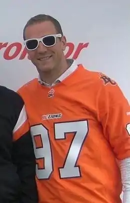 Brent Johnson was drafted by the Lions in the third round, 20th overall of the 2000 CFL Draft. He started playing for BC in 2001. Johnson led the CFL in sacks with 17 in the 2005 CFL season and 16 in the 2006 CFL season. He won the CFL's Most Outstanding Canadian Award and was named a CFL All-Star in both years. Johnson also won the CFL's Most Outstanding Defensive Player Award in 2006. He was awarded his third CFL All-Star selection for his performance in the 2008 CFL season. He holds the record for sacks with the BC Lions with 89 over his 11-year career.