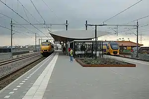 Breukelen is a railway station located in Breukelen, Netherlands. The station was opened on 18 December 1843 and is on the Amsterdam–Arnhem railway. It is also the northern end of the Harmelen–Breukelen railway. A new station was opened in 2002 nearer the A2 motorway and further from the town. For this the junction with the line to Harmelen and Woerden also moved.