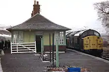 On 1 February 1987, the crossing loop was altered to right-hand running. The original Down platform has thus become the Up platform, and vice versa. The change was made in order to simplify shunting at this station, by removing the need to hand-pump the train-operated loop points to access the sidings.