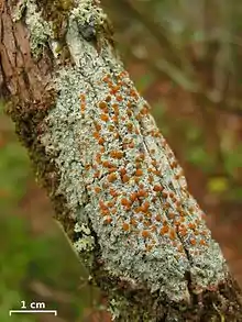 The Brigantiaeaceae are a family of fungi in the order Teloschistales.[1] Species in this family are lichenized with green algae, and are usually found growing on bark.[2]