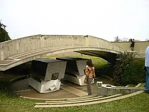 The "viewing device" of the pavilion of meditation suggests a vesica piscis, a recurring motif in Scarpa's architecture.[1]