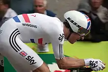 Bradley Wiggins wearing the National Time Trial Champion's Jersey in 2011