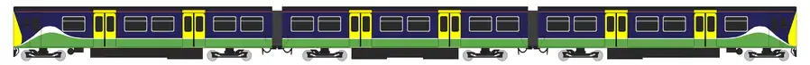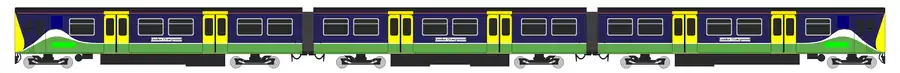 • Merseyrail Original (1992–2001; repaints 2002–2004): yellow with white around the windows and black and grey stripes, exclusive to Merseyside EMUs.