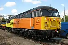 BREL's Doncaster Works were in heavy demand at this time and its resources would be stretched to meet these targets due to a lack of skilled personnel to manufacture mechanical components.[4] Instead the Ashford, Eastleigh and Swindon Works produced sub-assemblies; roofs, fuel tanks and cab frames were produced at Ashford, while cab desks were built at Eastleigh, and radiator housings were supplied from Swindon.[4] Final assembly was transferred from Doncaster Works to Crewe Works, allowing Doncaster to commence work on the new Class 58 heavy freight locomotive.[4]