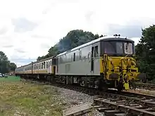The British Rail Class 73 is a British electro-diesel locomotive. The type is unusual in that it can operate from the Southern Region's 650/750 V DC third-rail or an on-board diesel engine to allow it to operate on non-electrified routes. This makes it very versatile, although the diesel engine produces less power than is available from the third-rail supply so the locomotives are rarely operated outside of the former Southern Region of British Rail. Following the withdrawal and scrapping of the more powerful Class 74 electro-diesels in 1977, the Class 73 was unique on the British railway network until the introduction of the Class 88 electro-diesels in 2017. Ten locomotives have been scrapped.