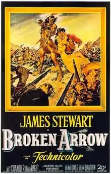 Broken Arrow is a 1950 American Western film directed by Delmer Daves and starring James Stewart, Jeff Chandler and Debra Paget. The film is based on historical figures but fictionalizes their story in dramatized form. It was nominated for three Academy Awards, and won a Golden Globe Award for Best Film Promoting International Understanding. Film historians have said that the movie was one of the first major Westerns since the Second World War to portray the Indians sympathetically.[2]