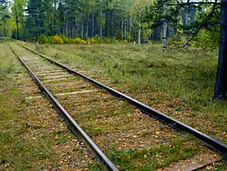 Old train tracks leading to location of forest massacres at Bronna Góra