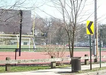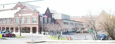 The elementary school, middle school, and high school are located in one large building near the downtown.[6] "It's very unusual to have one campus for all three schools," said John Chambers, the former superintendent. "It creates an interconnectedness and allows students to really get to know each other. And it allows teachers to track students over the years, which all studies show is very beneficial to education."[7] The school, located on Pondfield Road, is located in a low point in the town; during particularly heavy rains in the past, the school has experienced flooding. There was a period when the school was closed for several weeks as a result of flooding. As a result, boilers and heating equipment have been moved to higher levels, and basement areas have been remodeled with moisture resistant substances in case the building is flooded again.