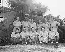 Clarence F. Pautzke (standing, 2nd from left) at the Bikini Atoll Radiological Survey, summer 1947