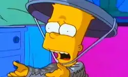 Taking the drug, Bart becomes an eager and diligent student. His parents think they can safely go out for an intimate evening together, but when they come home Bart is in his room wrapped in aluminum foil, with a garbage can on his head, and numerous coat hangers dangling from the ceiling. He claims that Major League Baseball is spying on the town using a satellite. The doctors recommend that Bart be weaned off Focusyn, but he refuses, swallows several handfuls of the pills and runs away.