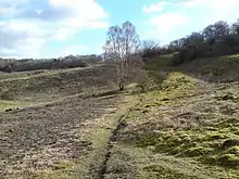 This sloping site on chalk has grassland which is grazed by rabbits and has many anthills. There are also areas of scrub and mature woodland. Insects include silver-spotted skipper, Duke of Burgundy fritillary and Essex skipper butterflies and chalk carpet moths.[4]