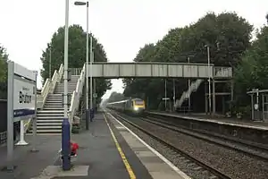 Bruton railway station serves a largely rural area in the county of Somerset in England. The station is situated in the market town of Bruton. The station is on the Bristol to Weymouth line some 32.75 miles (53 km) south of Bath Spa. Trains on the Reading to Taunton line pass through the station but do not normally stop. Services are operated by Great Western Railway (who also manage the station) and South Western Railway.[1]