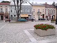 During the German invasion of Poland, which started World War II, the Wehrmacht arrived in Brzesko on 5 September 1939.[1] Soon afterwards, the Einsatzgruppe I entered the town to commit various atrocities against the populace.[2] Under German occupation, the town became part of the kreis (county) Tarnów in the Kraków District of the General Government, a separate administrative region of the Third Reich. 44 people were killed and about 200 were injured as they were waiting for the evacuation trains from Silesia.[3] Several Poles from Brzesko were murdered by the Russians in the large Katyn massacre carried out in April–May 1940.[4] A closed Jewish ghetto existed between spring 1941 and September 1942.[1] It spread across 3 areas: Berka Joselewicza Street, then all the buildings north of the Market Square up to the Rynek Sienny (known today as Sobieskiego Street and Chopina Street), and finally Głowackiego Street up to Trzcianka and the Kazimierza Wielkiego Square.[5] Several Poles were imprisoned by the Germans in the local prison and then deported to concentration camps for rescuing Jews.[6] The Red Army arrived in Brzesko on 19 January 1945,[3] and then the town was restored to Poland.