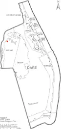 On October 11, 1889, the first post office was opened in Buffalo City. According to National Archive records, Charles A. Whallou delivered the mail to citizens of the town. Over the next decade, the forests surrounding Buffalo City were heavily depleted. The Buffalo Timber Company closed their operations and the post office was shut down in 1903. In 1907, the Dare Company purchased the forest and resumed logging operations. The post office was reopened on February 29, 1908. The town’s name was changed to Daresville, although the post office and citizens still used the Buffalo City title. The town's logging industry prospered throughout the 1910s and early 1920s. There were approximately 100 miles (160 km) of railroad tracks built throughout the logging area. Mules carried felled trees from lumber camps to the nearest railroad track. Freight cars then carried the wood to a transfer station at Milltail Creek and the barges took the lumber to sawmills in Elizabeth City.[1]
