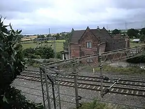 The station building was designed by John William Livock, who designed most of the stations on the Trent Valley Railway. It is one of the few remaining examples of original Livock designed station buildings on the Trent Valley Line. Two others still exist at Atherstone and Colwich.[4]
