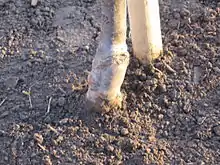 When located on the roots, it is considered to be not very dangerous, but it makes it easier for diseases to infect the tree, and leaves it more susceptible to insects.[3] When many burrknots are present on various location in the tree, it can make the tree unproductive.[4]