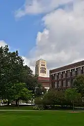 While this building houses a memorial carillon, it is primarily a conventional high-rise, contains classrooms for the University of Michigan's school of music, and houses offices for the department of musicology and ethnomusicology and for the University Musical Society.
