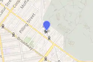 The single entrance to this underground station is in a small building on the north side of Bushwick Avenue between Aberdeen Street and DeSales Place.[7] In this space are 11-foot (3.4 m) high coffered ceilings, suspended light fixtures, and fancy ironwork.[5]