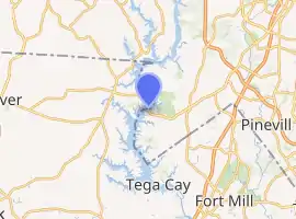![]() Photo taken from shore of Lake Wylie, SC looking south towards Steele Creek, NC. Steam release from Catawba Nuclear Power Station seen in background. | |
