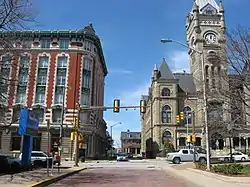 Butler Historic District is a national historic district located at Butler, Butler County, Pennsylvania. The district includes 128 contributing buildings, 1 contributing site, and 4 contributing objects in the central business district of Butler. It includes primarily commercial and institutional buildings, with some residential buildings, built between about 1828 and 1952 in a number of popular architectural styles including Late Victorian. Notable buildings include the City Hall, former U.S. Post Office (1912), Koch Building (c. 1910), T.W. Phillips Co. Office Building, Masonic Temple (1910), Butler High School (1917), Butler YMCA (1895), Butler YMCA (1913), First Evangelical Lutheran Church (1897), St. Andrews United Presbyterian Church (c. 1900), John Quincy Adams Kennedy House (c. 1884), St. Mark's Evangelical Lutheran Church and School (1952, 1925), First Baptist Church (1914), St. Paul's Roman Catholic Church (1909), and Butler Savings and Trust (1925). The contributing site is the Diamond, that contains the contributing objects including the Soldiers and Sailors Monument (1894). Located in the district and listed separately are the Butler County National Bank, the Sen. Walter Lowrie House, and the Butler County Courthouse.[2]