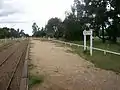 The station is located on a crossing loop. The station building has been demolished after burning down. Current platform and sign built 1990s.