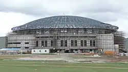 The Buyant Ukhaa Sport Palace (Mongolian: Буянт Ухаа Спорт Ордон) is a 274,000 square meter multi-purpose indoor arena in the Mongolian capital of Ulaanbaatar, adjacent to the Chinggis Khaan International Airport. The 5,045-seat arena was built using a grant from the People's Republic of China.[1] The total cost of the arena was 160mil ¥ (20,526,636.18USD) in 2009. The Shanghai Construction Group completed construction in June 2011.[2] The arena can host events in basketball, volleyball, badminton, wrestling, and judo, among others. A dedication ceremony was held in December 2010 with Chinese and Mongolian officials.[3]