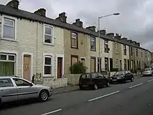 The greatest need at this time was for rental houses for the lowest paid workers. There also developed a need to build appropriate houses for skilled artisans and overseers. Building plots were sold to individuals, building clubs and building societies who would try to minimise the building and land costs. The earlier houses were built in terraces of eight to twelve houses, but as wealth, confidence and the demand for housing grew in the 1880s and 1890s, whole streets would be built together in the form of one long terrace.[9] Ginnels (entries) were set in after every fourth house, according to the Act.