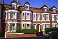 An early modification was the house with a passage from front door to back, with a rear adjoined scullery and bedroom above. The yard was pushed back. The privy was built adjoining the scullery block, and would have a water closet connected to mains drainage. The staircase started to be attached to the party wall and run at right angles to the street.[9] On the first floor there would be three bedrooms, one of which often later converted into a bathroom. To do this the plot had to be deeper.[10]