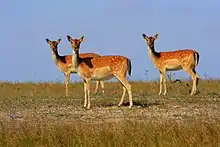 There are meadow, coastal water and sand-steppe landscapes. The flora includes about 700 species of plants. In the 1970s-80s, on the area of 232 hectares, there were planted shelter forests, consisting of elaeagnus angustifolia, ulmus laevis, robinia pseudoacacia, fraxinus excelsior. It is a habitat for about a thousand of acclimatized red deer, 2500 fallow deer, 90 onagers and several dozens of domestic horses and moufflons; acclimatized birds are pheasants.