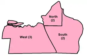 For the election, Bytown was divided into three wards, West, North and South. West Ward, consisting of the Upper Town portion of the town (now Downtown Ottawa) returned three councillors, while the North and South wards located in Lower Town returned two councillors each. Lower Town had a slight majority of councillors, but this did not fully reflect their large majority in numbers of householders. West Ward had three councillors for 234 householders, while the Lower Town wards had four councillors for 645 householders. This gerrymander was said to support the Tories living in Upper Town at the expense of the Reformers in Lower Town. Further, the division of Lower Town into two wards was seen as an attempt to divide the Francophone and Irish communities and commercial interests.[3]