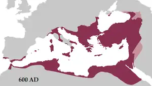 Neither empire was given much chance to recover, as within a few years they were struck by the onslaught of the Arabs, newly united by Islam,[170] which Howard-Johnston likened to "a human tsunami".[171] According to George Liska, the "unnecessarily prolonged Byzantine–Persian conflict opened the way for Islam".[172] The Sasanian Empire rapidly succumbed to these attacks and was completely destroyed. During the Byzantine–Arab Wars, the exhausted Byzantine Empire's recently regained eastern and southern provinces of Syria, Armenia, Egypt, and North Africa were also lost, reducing the empire to a territorial core consisting of Anatolia and a scatter of islands and footholds in the Balkans and Italy.[166] However, unlike Persia, the Byzantine Empire ultimately survived the Arab assault, holding onto its remaining territories and decisively repulsing two Arab sieges of its capital in 674–678 and 717–718.[164][173] The Byzantine Empire also lost its territories in Crete and southern Italy to the Arabs in later conflicts, though these too were ultimately recovered.[174][175] However, some losses were permanent, such as the loss of Spania, the remaining Byzantine holdings in Spain, which was conquered by the Visigoths by 629.[176] Similarly, Corsica was taken by the Lombards in the 8th century.[177] The Balearic Islands, Sardinia and Sicily were captured by Arabs in the 10th century.[178]