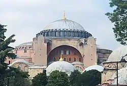 Modern historians generally regard the term "Byzantine" to have been used as a label of the later years of the Roman Empire from 1557 onwards, 104 years after the empire's collapse, when the German historian Hieronymus Wolf published his work Corpus Historiæ Byzantinæ, a collection of historical sources.[4] According to Anthony Kaldellis, an Athenian Laonikos Chalkokondyles in the mid 15th century who advocated a neo-Hellenic identity of the Romans, was the first to use the term in this way.[5] The term comes from "Byzantium", the name of the city to which Constantine moved his capital, leaving Rome, and rebuilt under the new name of Constantinople. The older name of the city was rarely used from this point onward except in historical or poetic contexts. The publication in 1648 of the Byzantine du Louvre (Corpus Scriptorum Historiae Byzantinae), and in 1680 of Du Cange's Historia Byzantina further popularised the use of "Byzantine" among French authors, such as Montesquieu.[6] However, it was not until the mid-19th century that the term came into general use in the Western world.[7] Anthony Kaldellis claims this was due to the politics of the Crimean war, which included Greece's megali idea.[8]