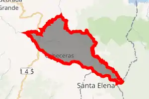Cabeceras has an area of 51.25 km²[3] and an elevation of 725 metres.[1]