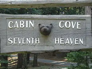 Entrance sign for Cabin Cove, on the Mineral King Road.