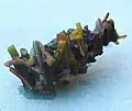 Fossil caddisflies have been found in rocks dating back to the Triassic.[3] The largest numbers of fossilised remains are those of larval cases, which are made of durable materials that preserve well. Body fossils of caddisflies are extremely rare, the oldest being from the Early and Middle Triassic, some 230 million years ago, and wings are another source of fossils.[4] The evolution of the group to one with fully aquatic larvae seems to have taken place sometime during the Triassic.[5] The finding of fossils resembling caddisfly larval cases in marine deposits in Brazil may push back the origins of the order to the Early Permian period.[4]