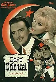 Café Oriental is a 1962 German musical comedy film directed by Rudolf Schündler and starring Elke Sommer, Jerome Courtland, Trude Herr, and Bill Ramsey.[1]