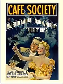Cafe Society is a 1939 American romantic comedy film directed by Edward H. Griffith and starring Madeleine Carroll, Fred MacMurray and Shirley Ross.[1] A wealthy young woman marries a reporter to win a bet.[2]