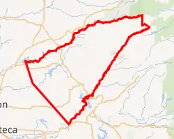 According to the U.S. Census Bureau, the county has a total area of 1,037 square miles (2,690 km2), of which 1,020 square miles (2,600 km2) is land and 17 square miles (44 km2) (1.6%) is water.[14] A California Department of Forestry report lists the county's area in acres as 663,000, although the exact figure would be 663,477.949 acres (2,685.00000 km2). There are a number of caverns located in Calaveras County.