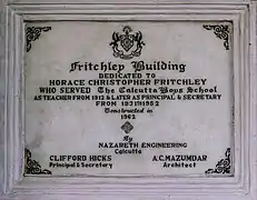 During Clifford Hicks' (educationist) time as Principal & Secretary, the middle building that currently houses the CBS Chapel Hall was built. Named the 'Fritchley Building', the construction was made possible by the retirement benefit and gratuity of Mr. Horace Christopher Fritchley, former Principal (1931-1951), which he donated to "his very dear CBS" together with donations collected by the students of the school. The school library (now housed in the old Physics lab) is named "The Clifford Hicks Memorial Library". The CBS Archives (established in 2008) is housed in the old Library.
