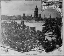 The monument was dedicated on Sunday, August 12, 1906. During the ceremony, several dignitaries gave speeches, including former San Francisco Mayor Phelan; current Mayor Schmitz; California Governor Pardee; and General James F. Smith, Governor-General of the Philippines.[3]