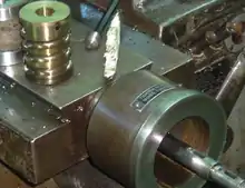 An example of a cylindrical cam with two inputs is provided by a duplicating lathe, an example of which is the Klotz axe handle lathe,[12] which cuts an axe handle to a form controlled by a pattern acting as a cam for the lathe mechanism.