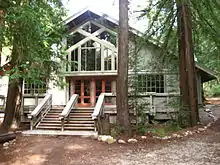 Original facilities included the Bing Crosby Kitchen built with money donated by the Bing Crosby Fund, funded by the Bing Crosby Pro-Am Invitational.[15] Other facilities also constructed when the camp was first built include an administration building, Catholic Chapel, Presbyterian Chapel, quartermaster's building and trading post, health lodge, staff lodge, handicraft lodge, boat house, the original camp ranger's cabin, bridges, river fords, electrical system, and twelve campsites.[16] The Presbyterian Chapel was built around a cabin constructed by Isaac N. Swetnam in the 1890s. The Catholic Chapel was damaged by a falling tree and was demolished.