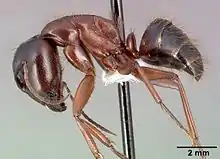 Camponotus dumetorum is a species of ant in the family Formicidae.[1][2][3][4] This species belongs to the genus Camponotus, which is native to North America. They are related to other species from the subgenus Tanaemyremex in western North America such as C. semitestaceus and C. vicinus.[5] C. dumetorum are primarily nocturnal and form undergrounds nests.[6][7] Like other select ant species native to California, their populations have been displaced with the introduction of Argentine ants.[8][9]
