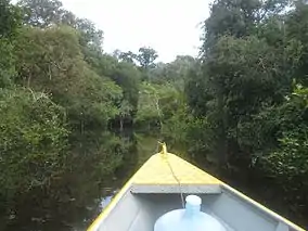 The Roosevelt River flows through the park from south to north. The Jiparaná River (Machado River) forms the park's southern boundary in Rondônia.[3] The terrain is generally flat, with some gently rolling stretches. It is laced with slow, meandering rivers. It contains parts of the basins of the Machado and Roosevelt rivers, and contains the headwaters of the dos Marmelos and Manicoré rivers.[5]