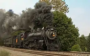 In 1982, it was sold again to the Gettysburg Railroad, who disassembled it to be hauled by truck to Gettysburg. It was subsequently reassembled and restored to operating condition in 1983, and then it began pulling excursion trains between Gettysburg and Mount Holly Springs. It also participated in that year's National Railway Historical Society (NRHS) convention alongside Huntingdon and Broad Top Mountain Railroad and Coal Company 2-8-0 No. 38.[5] During its time at Gettysburg, however, the locomotive proved to be oversized and overpowered for the railroad's needs, so it only operated there for two years.[6]