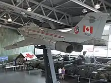 Equipment is organized into several sections, land, air, sea, field artillery, armoured fighting vehicles, cannon or mortar, and tanks.[59] Most of the equipment in the gallery has been restored and cleaned, arranged and organized with museum labels which provide details on the equipment.[60] The museum labels accompanying the pieces are focused primarily on the technical aspects of the equipment.[61] The equipment housed in LeBreton Gallery are among the largest items in the museum's collections, and includes a McDonnell CF-101 Voodoo, 19th century artillery pieces, tanks, and other military vehicles.[26] The majority of the lighter wheeled and tracked transport vehicles on display date back to the Second World War or the Cold War era.[62]