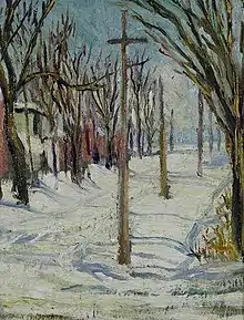 The Canadian Art Club, in existence from 1907 to 1915, was formed in an effort to improve the quality of the various standard exhibitions. The founders of the Club were the painters Edmund Morris and Curtis Williamson, who attempted to establish higher standards through small, carefully hung shows. Membership of the Club was by invitation only. Homer Watson was the first president, and other members included William Brymner, Maurice Cullen, and James Wilson Morrice.[43]