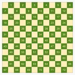 |  Canadian checkers board and starting setup; White moves first. Canadian checkers is played on 12×12 board | |